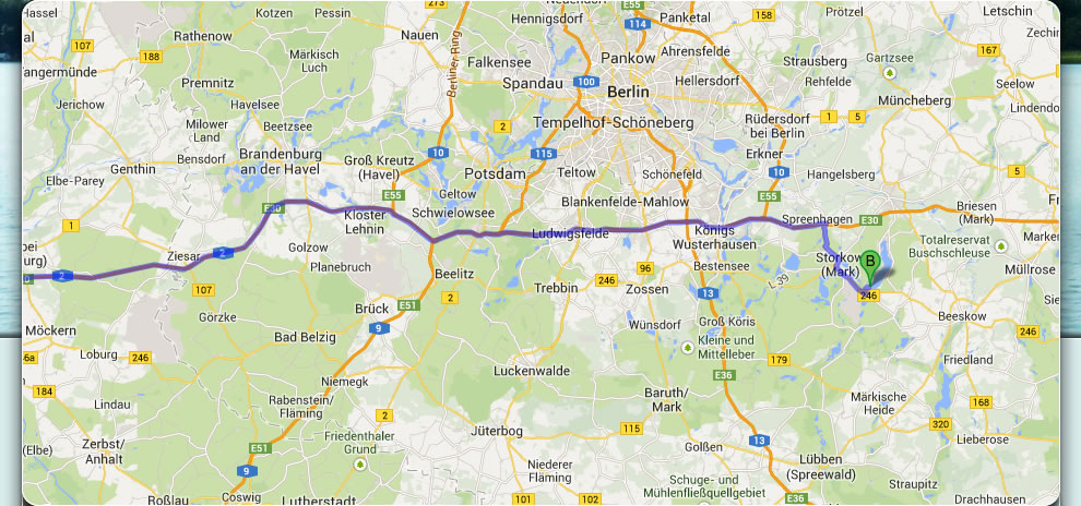 PKW: Autobahn A12, Abfahrt Storkow. Auf der B246 über Storkow in Richtung Beeskow fahren bis Wendisch-Rietz. Links abbiegen, den Ort durchqueren und kurz hinter dem Zentrum halbrechts in den Schwarzhorner Weg einbiegen. Hinter dem "Landhaus im Grünen" rechts abbiegen und danach gleich wieder links in die Luisenaue; Haus-Nr. 31.